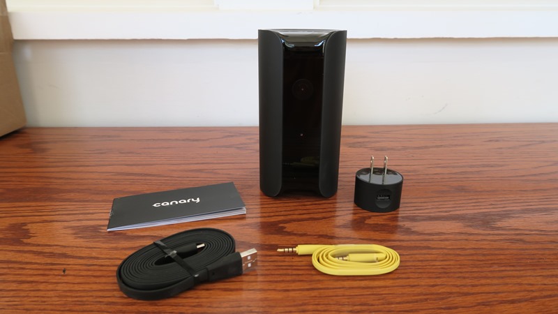 The Canary is sleek looking and attractive.  You can get the unit in either white or black to help blend into the surroundings.  The unit only weighs .87 lbs and is 6″ high by 3″ in diameter.  While the unit is round in shape, the front is flat.  On the flat part of the unit lays the camera and sensors.  You have a 147° viewing angle, a 3 times zoom and 12 infrared LED, which are for night vision.  On the back of the unit, you have a couple of ports.  There is an Ethernet port if you want to hard wire the unit, there is a micro USB power port and port if you want to create a secure connection between the camera and your phone or tablet.  On the bottom of the unit, there are LED lights that give you a visual alert of the status.  Blinking red means it’s searching for a network connection and solid red when it’s offline.  A solid green light means the Canary is armed and yellow means it’s disarmed.  On the bottom is also where it measures the air quality, humidity and temperature.  The speaker for the 90 dB siren is also located on the bottom.