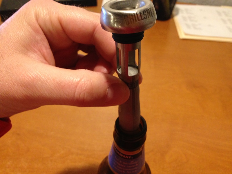 The Chillsner is a very simple concept. It’s basically a metal rod, that has a hollow center. You put the Chillsner in the freezer, once the metal gets cold, you insert it into your beer bottle and wham, your beer stays cold longer. Here is the kicker. Since the center is hollow, you can leave it in place and still drink your beer. I have noticed that when you use the Chillsner, the beer doesn’t pour as fast into your mouth. Also which I learned the hard way, make sure you take a sip of beer before you put the Chillsner in the bottle as you need a little room for expansion. Not a huge deal, but it did take a couple sips to get use to. Now to be fair, I haven’t had this sit in the summer heat. However I have noticed a big difference when just sitting back and doing a little drinking at home. You know how it goes. You have a long hard day. You get home, grab a beer and sit in your favorite Lazy boy. After about ten minutes, you fall asleep only to wake up to the kids screaming, the wife yelling and you wondering what day it is. Well your life might be a little chaotic at that time, but at least you have a cold beer thanks to the Chillsner Beer Chiller. Cheers.