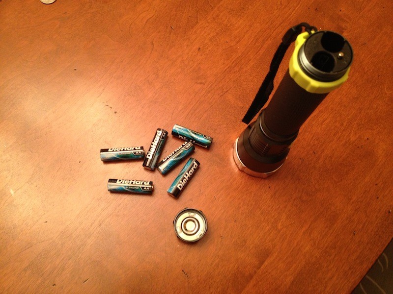 Lets start with the basic construction of the light. It is made from aluminum and water resistant with an Ip rating of IPX-4. It has a nice grip and overall has a quality feel to it except for the sound of the 6 batteries rattling around. The rubber button has 3 settings, off, high and low. For when you are working in extreme conditions the button is easy to operate with gloves on. The overall design prevents the light from rolling, which is good when you lay it on an angled surface.
