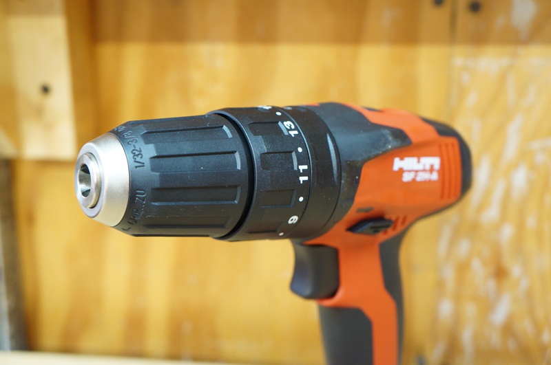 As with their other 12v tools, the Hilti SF 2H-A hammer drill is lightweight and is pretty short.  The tool only weighs 2.2 lbs, not bad considering what this tool is capable of.  In regards to overall size, it is pretty short with a length of 6.88″.  The tool has a two speed selector with 15 different clutch settings.  The tool uses a variable trigger that produces 0-400/01,500 rpms.  While I didn’t find much I didn’t like about this tool, I did find a whole bunch of reasons to love this drill.