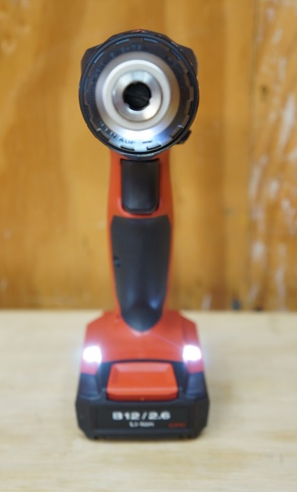 First, I love the fact Hilti designed the tool with a separate ring that allows the user to select what mode they want.  You can keep your clutch settings the same and you can select a different mode with another ring.  You can select screw, drill or hammering mode.  In regards to the overall balance of the tool, it’s not too bad.  I love the grip on these 12v tools as they just feel comfortable in your hands.  On the handle there is a rubber grip on the front and back of the tool which assist in the grip of the tool.  The tool comes with a belt clip that can be mounted on either the right or left side of the tool. Another item I like about this tool is the LED lights.  The Hilti SF 2H-A has a double LED light located on the base of the tool.  So they placed one on the left and one on the right.  The position of the LED lights does a great job at keeping shadows to a minimum.  In regards to the battery, Hilti uses a 2.6 Ah slide on battery.  One cool feature is the battery status gauge is actually on the battery and not on the tool.
