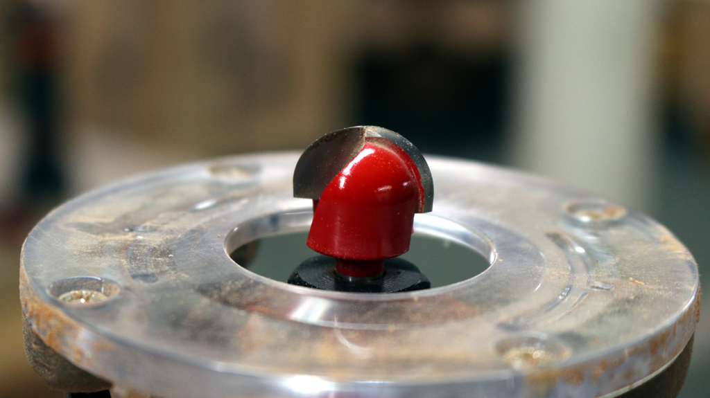 To give the cutting boards a softer feel, I like to use a round off bit on all of the edges.  Here I’m using a router table with a 3/8″ round off top bearing bit, but you can also use a handheld router as well.