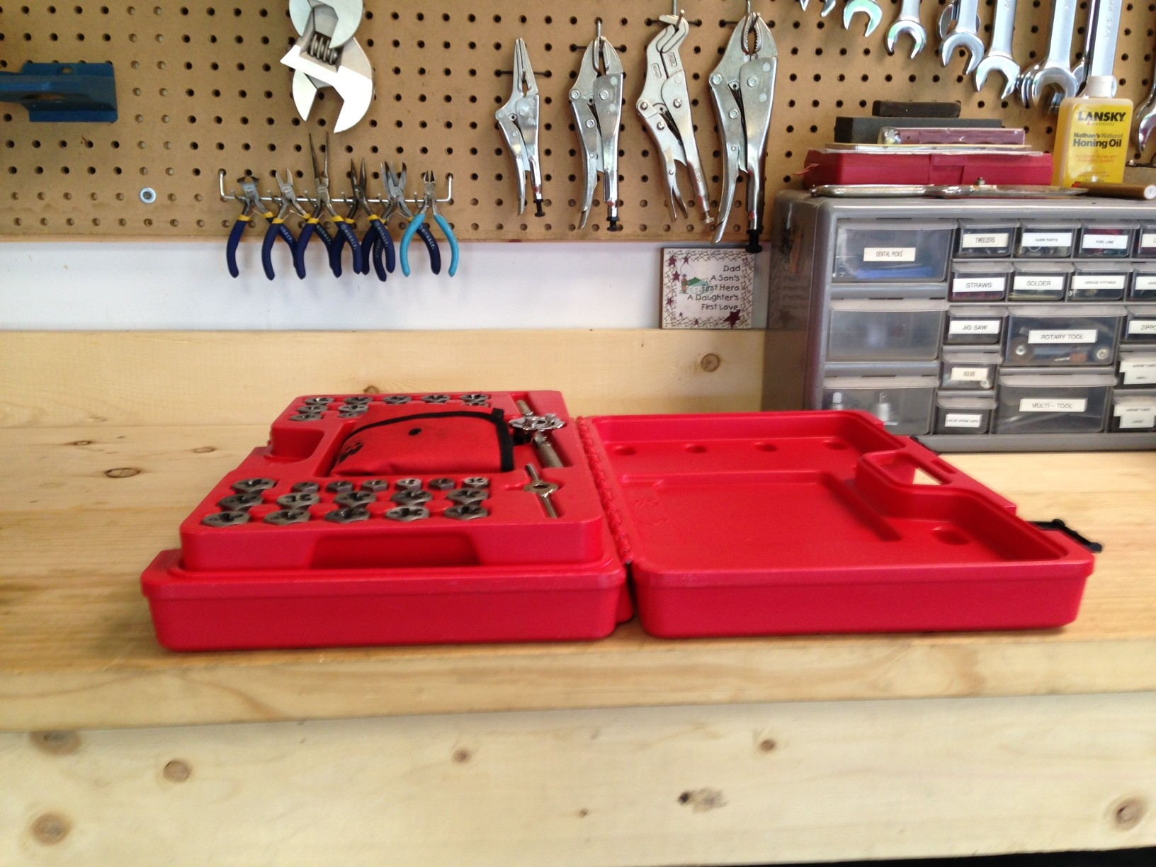 The Die tray is removable and would easily fit in my old medium top drawer, but the Tap storage is embedded into the case. Why not have the tap tray removable just like the Die tray? This would allow the user to A: keep taps or dies (whichever he/she uses more) on top to speed up the job (I use taps WAY more that dies) , or B: discard the outer case altogether and simply place the trays in a smaller drawer. It’s a small critique, but it would go along way toward improving the versatility of the set, especially if you use taps more as they are currently confined to the bottom of the case.