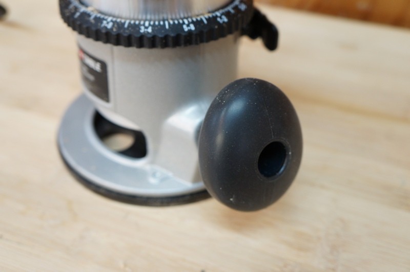The one thing I did notice from this to my older version is the grip.  Mine has more of a rounded handle, while this has more of an oval handle which feels much better.  This router features an 11 amp motor with a peak of 1-3/4″ HP and has an rpm of 27,500.   On the fixed base,  inserting and locking the router is a snap.  There is a cam lever to adjust and lock it into place.  On the plunge base, this is much harder.  The user has to use a small Allen wrench to tighten the router into the base.  To get the router out, you have to take the screw all the way out.  I find this method a little cumbersome and could have a better design, but I will touch on that in a bit.