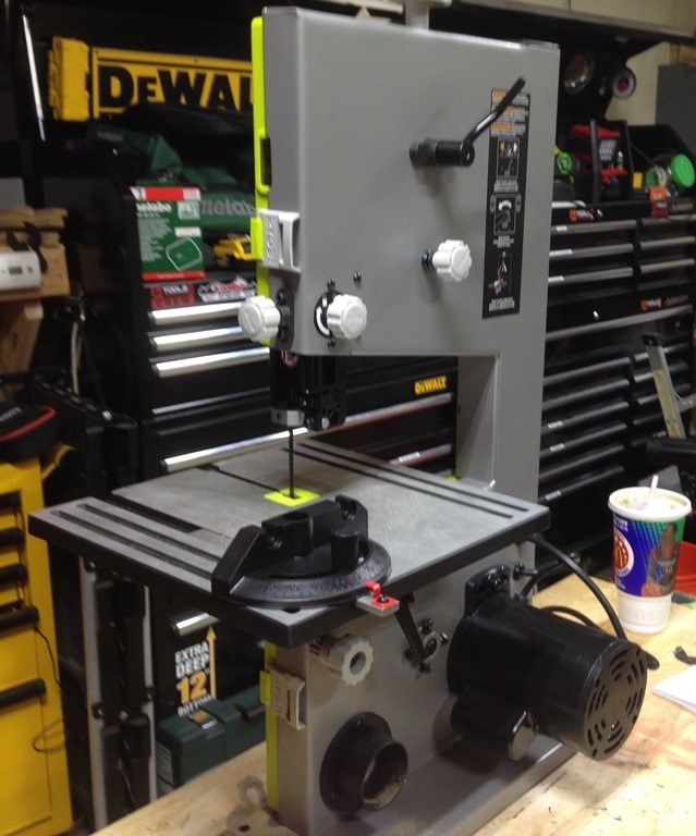 Now that I got the stats out of the way, I just want to talk about a couple of other items. Out of the box, it was pretty much set up. I did have to adjust the table to make sure it was level. This wasn’t too bad, but just something that could have been done at the factory. The miter gauge is also a little small, but that is to be expected due to the size of the table. I noticed my Bosch miter gauge did fit in the tracks and works in case I need something a little bigger. For me, I like this saw. I don’t use a band saw much, but it’s one of those tools that is nice to have around when you need it, it just makes the job that much easier. While it does have weight to it, it’s not too bad. I like being able to move it off my bench, since I don’t use it much. For what I cut and how often I cut, this is a perfect saw. I really can’t expect too much for a $130 saw. It has a lot of options and they are all easy to use. While there are some things I would change on the unit, it’s not enough to make me not buy the Ryobi band Saw. I think any homeowner who wants to get into a decent band saw, for the price, it’s hard to beat.
