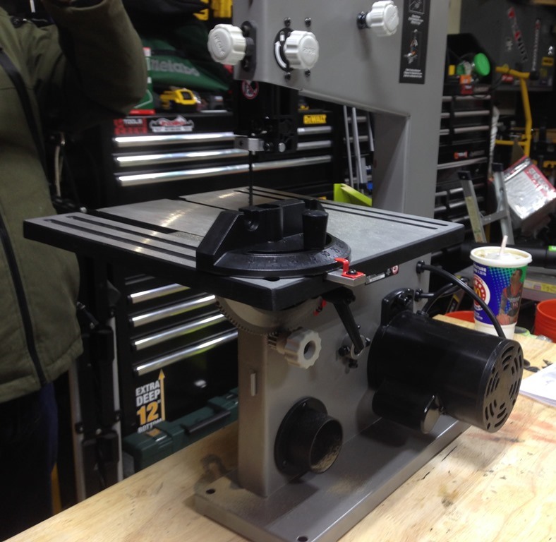 Now before I get started talking about this saw, let me just get one thing straight. If you are a dedicated woodworker, this isn’t the saw for you. Even if you are getting into woodworking and think it will be more than a hobby, you might want to spend the extra money and get a more professional saw. For the rest of us who like woodworking, but it’s not our life, this is a great table top band saw. While this saw has a couple quirks, it’s a perfect solution to get a band saw in your shop that doesn’t break the bank, doesn’t take up a ton of room and can be moved. So as you read this, understand this is designed for the homeowner that needs a fairly well built band saw, doesn’t want to spend a ton of money and isn’t doing a ton of woodworking with a band saw.