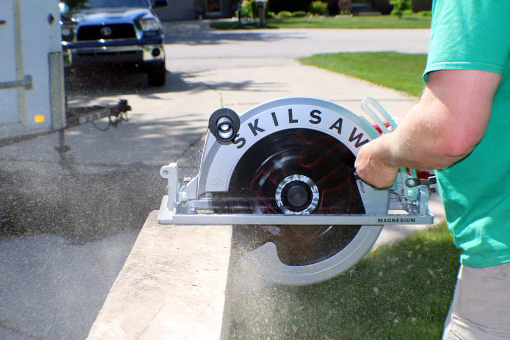 Before I go any further, this saw blade rotates at 2,500 no load RPM which is much slower than the typical 5,300 no load RPM found on 7-1/4″ circular saws. Even though the center of the blade is turning slower, the large blade size creates a high blade tip speed.