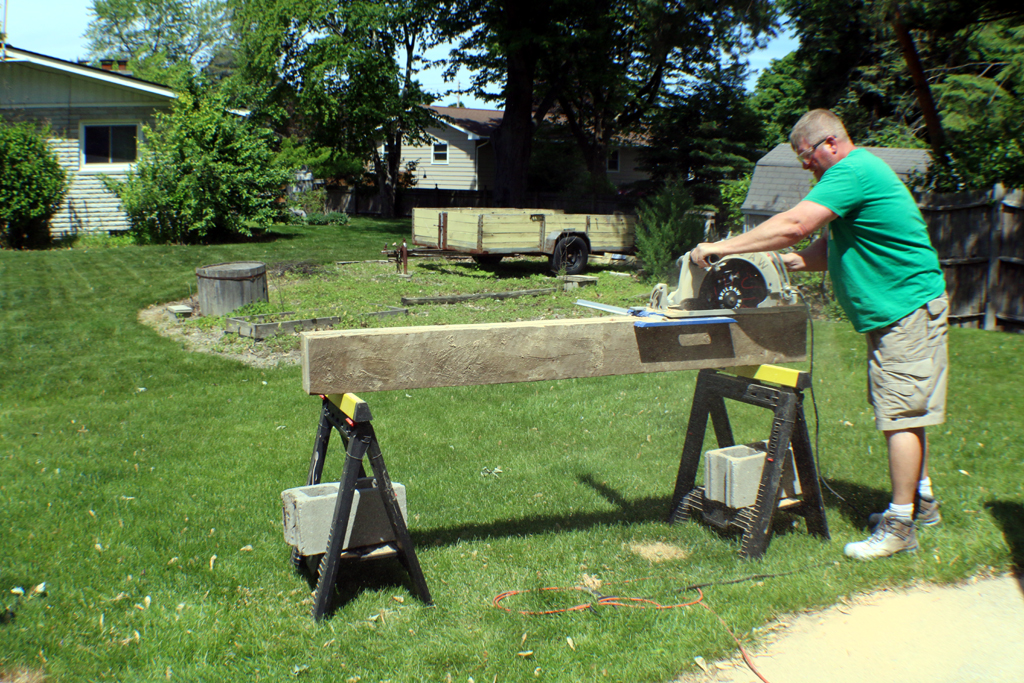 Using the Kreg Rip-Cut setup, I cut lengthwise strips into the beam 6 inches deep for the full 6 feet. I performed this cut 6 consecutive times and didn’t give the saw very much time to cool down between cuts. Just long enough for me to get a breather.