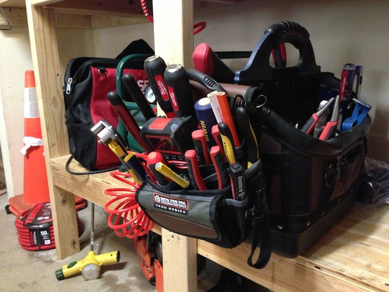 1. Dan–Nice review, and Eric didn’t harass you much during the taping. I like Veto bags, but they get pretty heavy when loaded. The concept of being able to wear the smaller tech bags on your hip for a specific job (either on the ground or on a ladder) is great. Have you guys also checked out the Werner AC50-JB-3 (Job Box), or the AC-54-JC (Job Caddy), as well? The Job Box can carry a lot of tools, or you can fill it with water to wash windows, and it has a wire carry handle. The AC54-JC (Job Caddy) is a smaller segmented box, which separates screws, nails, bolts, etc., keeping them in front of you while working on a ladder. It also has slots for screwdrivers and other small tools. These are a big improvement over trying to balance a drill or other tools on the small fold-out shelf that many ladders have. They also offer a Paint Cup, which frees you from balancing a quart or gallon paint can up on the ladder with you.